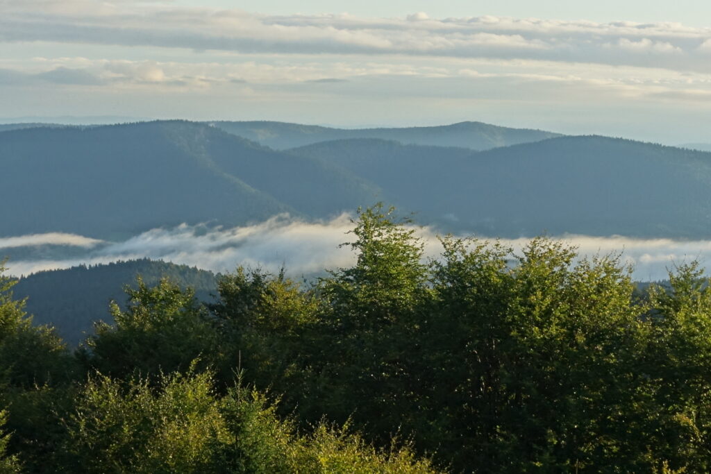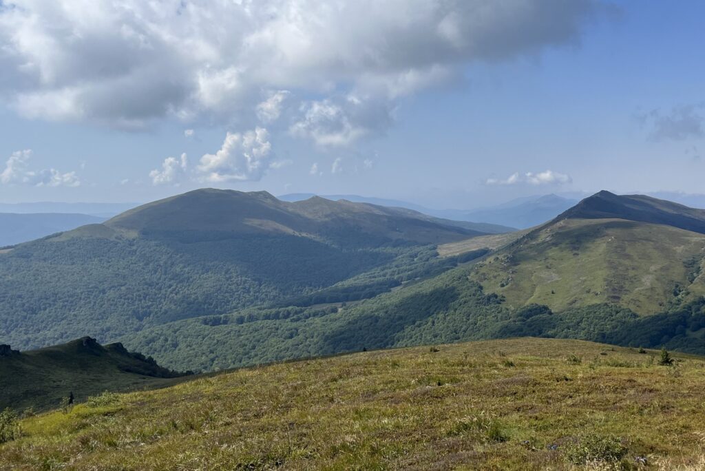 Bieszczady są górami znanymi i bardzo popularnymi, z przepięknymi panoramami z połonin. Na dodatek szczęśliwie dla nas było to jedyne pasmo górskie na trasie, które udało nam się pokonać bez deszczu. Kilka początkowych odcinków z mocnymi akcentami Rozsypańca, Halicza, Połonin Caryńskiej i Wetlińskiej czy też Okrąglika i Jasła. A pierwszego dnia zdarzyła się nam sytuacja wręcz nieprawdopodobna – wilk goniący łanię, która ratowała się, przebiegając tuż przed turystami podążającymi na Halicz.