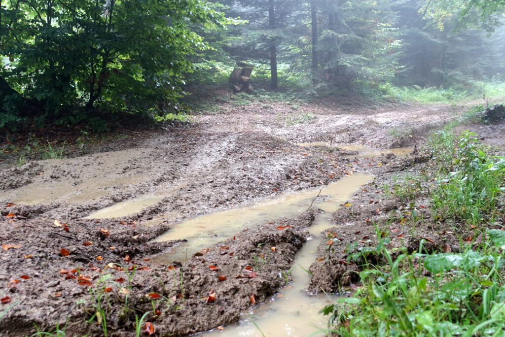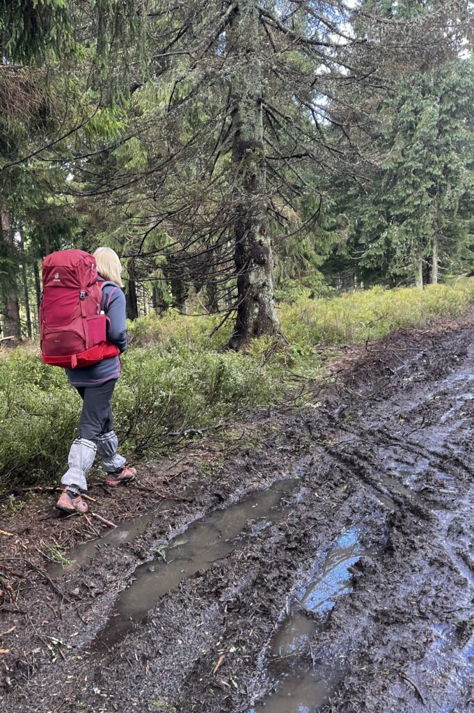 Kolejne trzy noce spędzamy w pustawych w ciągu tygodnia schroniskach PTTK – na Hali Krupowej, Markowych Szczawinach i Hali Miziowej pod Pilskiem. W drodze na Krupową turystów z plecakami nie ma, są za to quady, buggi i skutery, a na nich podekscytowani kierowcy. Rozjeżdżają głębokie koleiny, bryzgają błotem na parę metrów i robią niemało hałasu.
