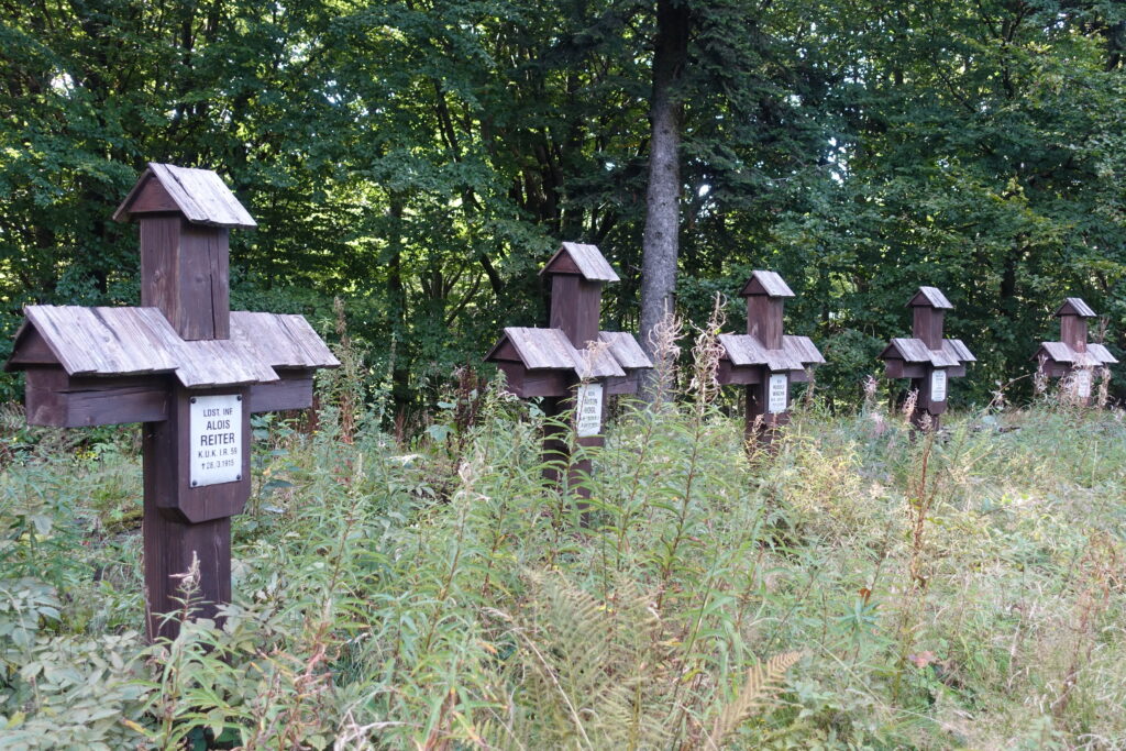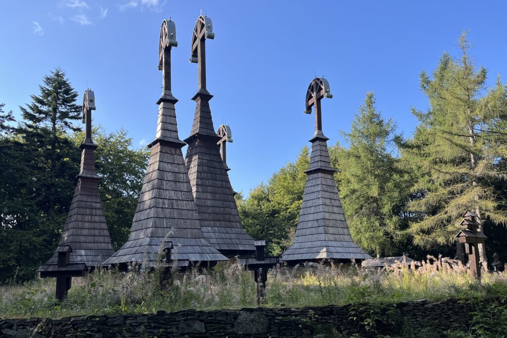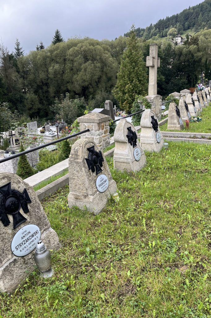 To pasmo górskie znamy stosunkowo dobrze – w schroniskach na Hali Łabowskiej i na Przehybie spaliśmy wielokrotnie. Jest to jedna z naszych ulubionych górskich destynacji. Wychodząc z Krynicy, wstąpiliśmy na cmentarz, by odwiedzić grób Nikifora. Zatrzymaliśmy się przy grobach poległych w I wojnie oraz nagrobkach miejscowych z niezwykłymi bogatymi w szczegóły inskrypcjami.