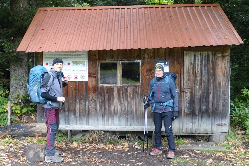Jedynym schroniskiem PTTK na szlaku w Bieszczadach była Bacówka pod Honem w Cisnej. Schronisko jest po remoncie, ma super toalety i prysznice, a gorące rurki na ścianie w piwnicy tworzą suszarnię, więc można zrobić małe pranie. Za Cisną w paśmie Wołosania i Chryszczatej dominują lasy karpackie, więc od bacówki krajobraz zaczyna przypominać Beskid Niski. W Rabem, niedaleko od przełęczy Żebrak, korzystamy z otwartej jeszcze studenckiej bazy namiotowej, a emeryci na bazie śpią za 1 zł! Wszędzie znajdują się tablice ostrzegające przed niedźwiedziami. W kieszeni mamy na wszelki wypadek dwie petardy hukowe, ale na szczęście nie musieliśmy ich użyć.