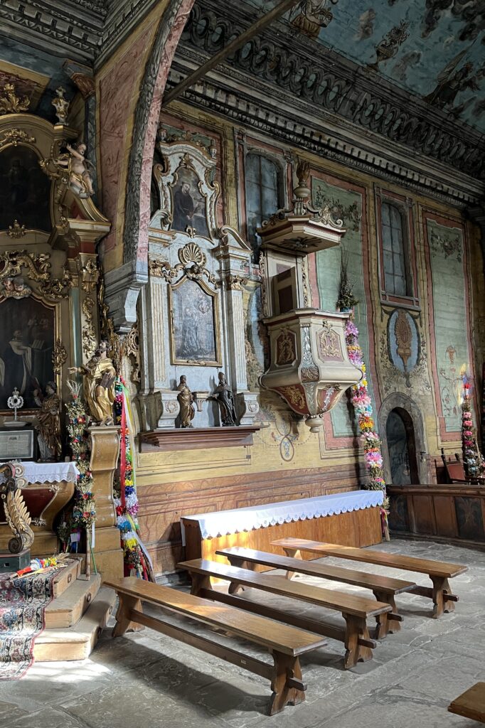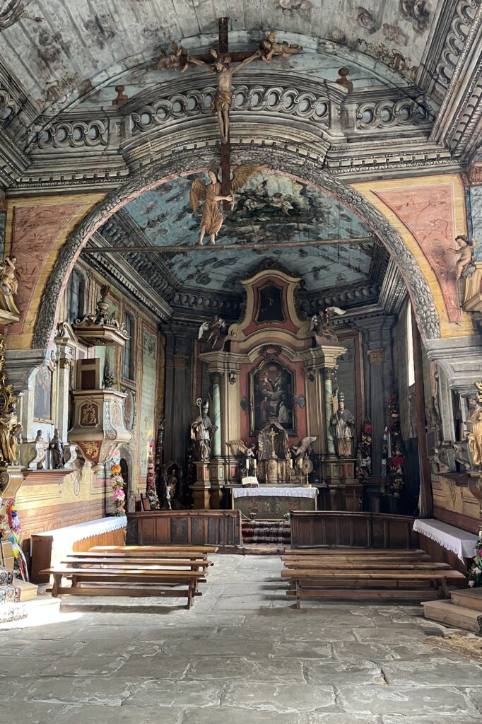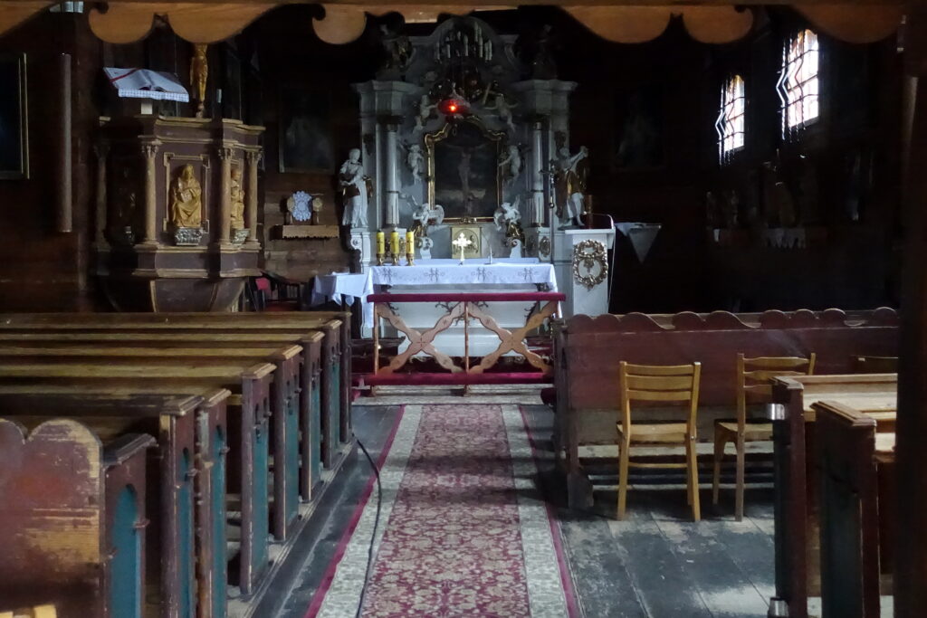 Następnego dnia spędziliśmy godzinę przy piwie w zatłoczonym, hałaśliwym schronisku na Turbaczu, ciesząc się, że nie musimy spędzać tu nocy. W Rabce zachodzimy do kościoła p.w. św. Marii Magdaleny, jednego z ładniejszych drewnianych kościołów na Podtatrzu. Zbudowano go w 1606 r. jako budowlę w stylu późnogotyckim. W kościele nieużywanym od 1923 roku znajduje się teraz bardzo ciekawe regionalne Muzeum im. Władysława Orkana, które liczy sobie prawie 90 lat.