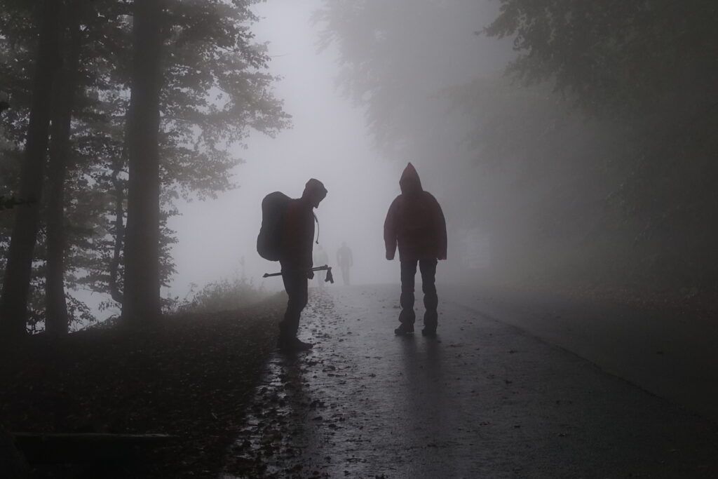 Przed nami ostatnie pasmo górskie, ostatnie dni i ostatni akord wyprawy. Zaczynamy od długiego podejścia na Baranią Górę (1220 m), drugi po Skrzycznem pod względem wysokości szczyt w Beskidzie Śląskim. Na górze znajduje się kolejna wieża widokowa, na którą patrzymy bez żalu, przechodząc obok. Chmury i mgła zmieniająca się w mżawkę sprawiają, że wejście na wieżę okazuje się znów bezcelowe.
