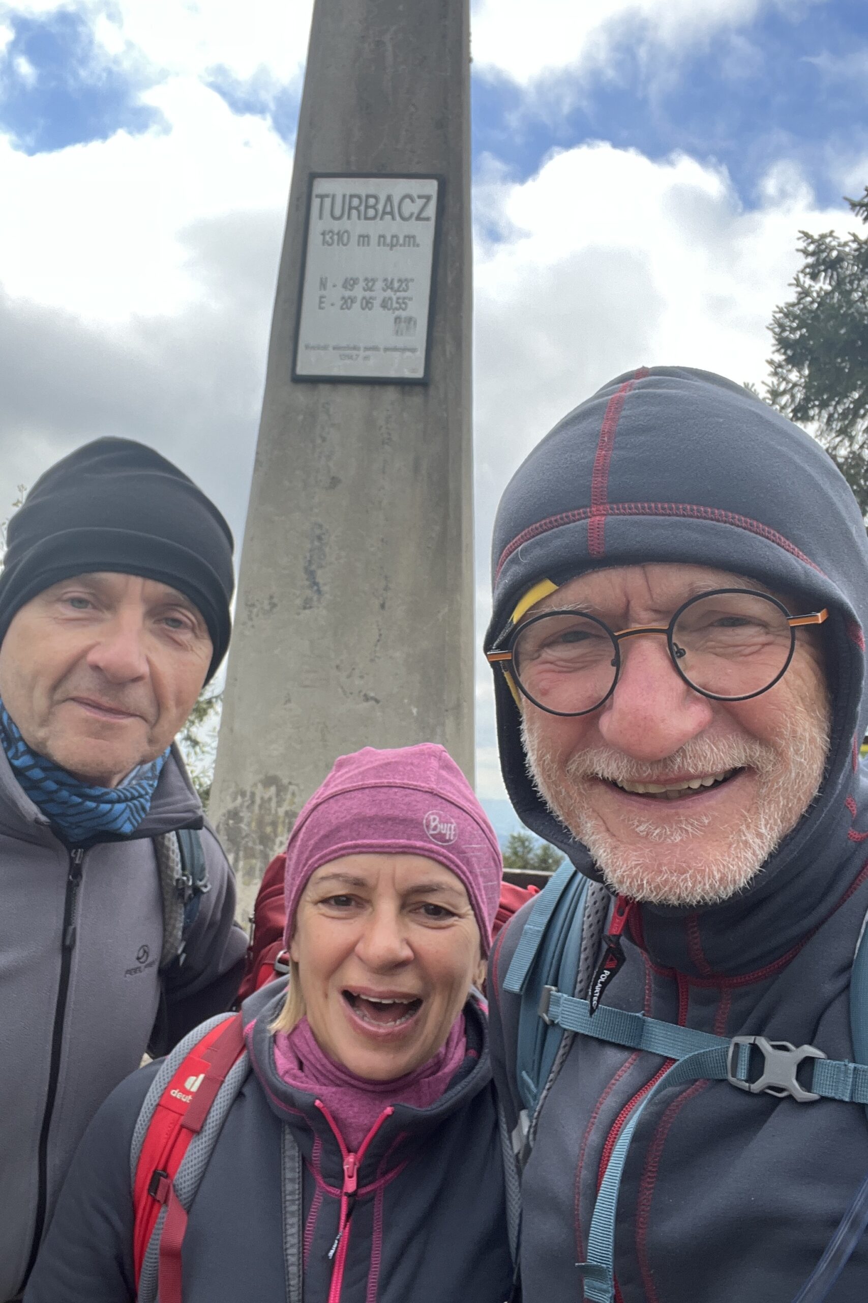 Wejście na Babią Górę zawsze robi wrażenie, szczególne w warunkach zimowych, przy temperaturze około 0 stopni i silnym wietrze. Ale osiągamy najwyższy punkt naszej czterotygodniowej wędrówki, więc toast jest niezbędny. Jedynie dłonie bardzo marzną po zdjęciu mokrych rękawic.